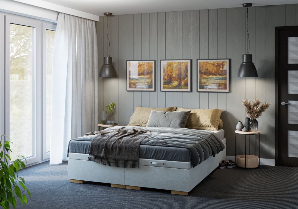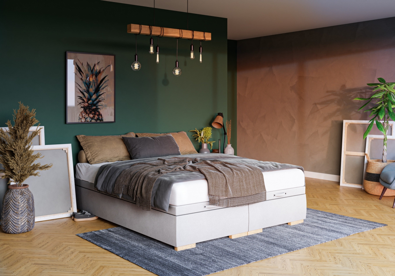 Neben den Packshot-Aufnahmen haben wir auch 3D-Arrangements erstellt, in denen wir die Betten in von uns entworfenen Innenräumen platziert haben.